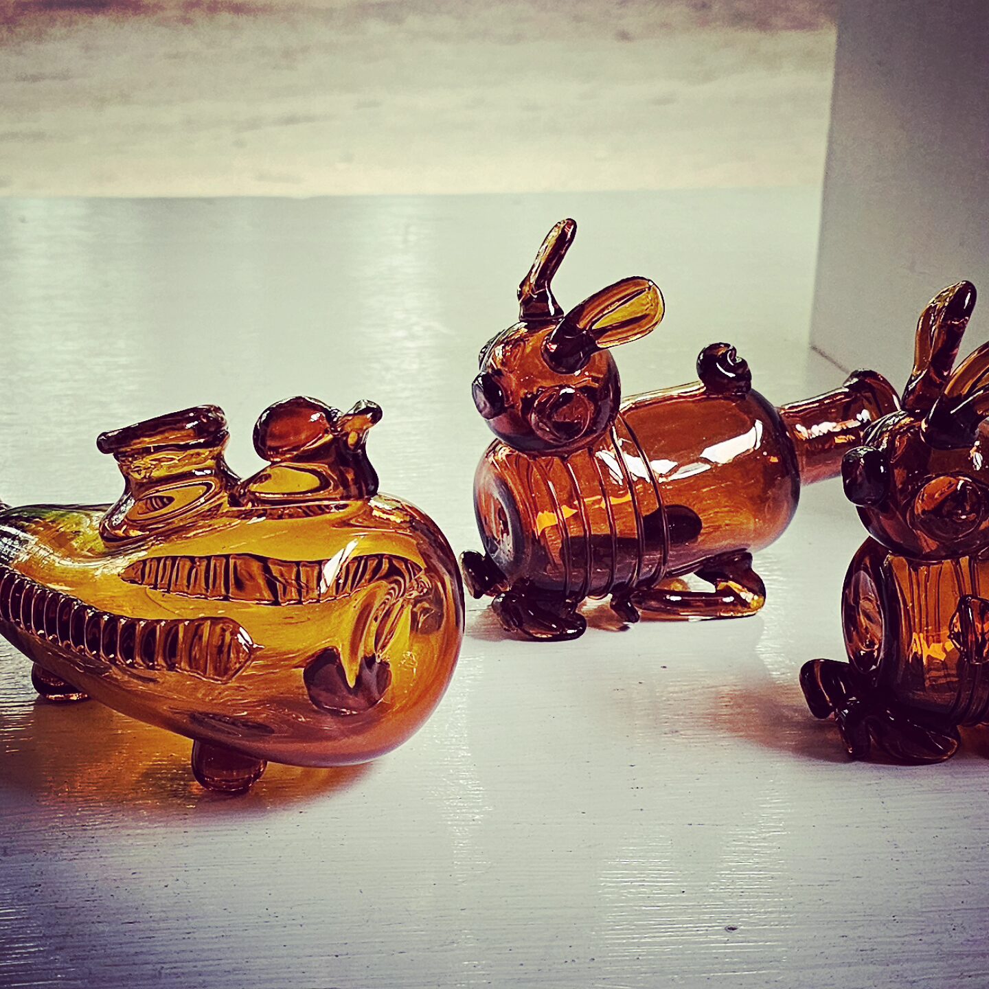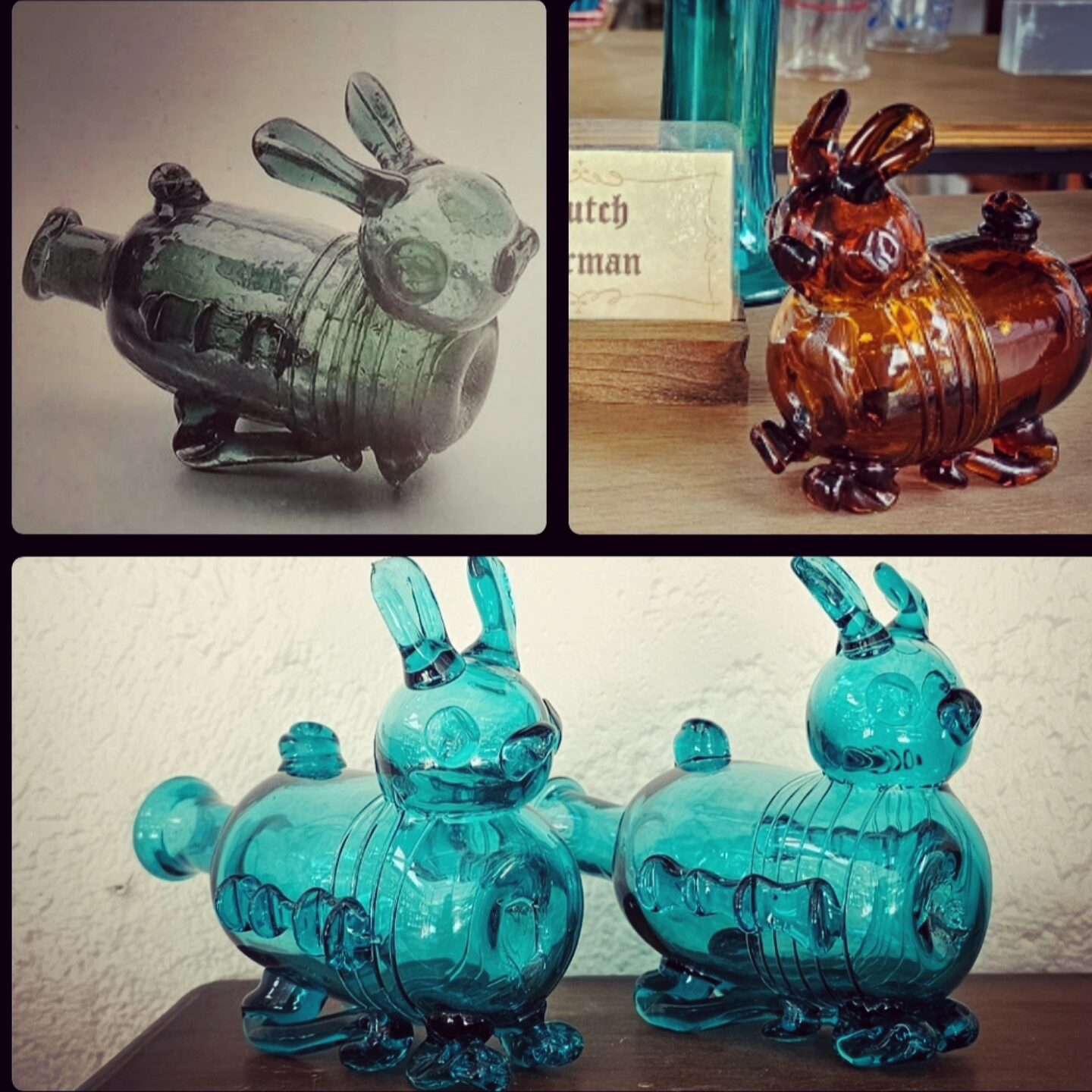 Vessels in the shapes of animals, food, and other items have been popular since Antiquity. These bottles come from Germany and the Low Countries and date to around the 17th Century.